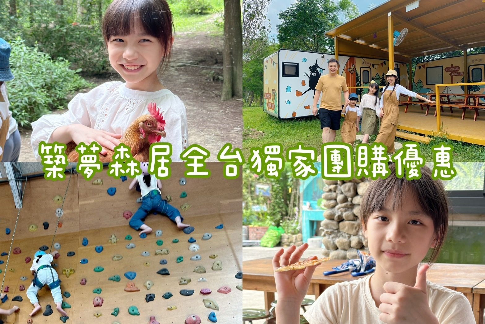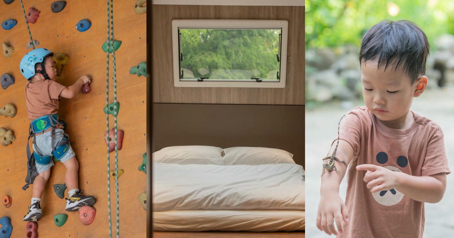 帶小朋友住進大自然,「築夢森居」星空露營車一泊二食,露營車有冷氣、衛浴,旁邊還有大草坪可以跑跳。築夢森居園區有豐富的生態、親子體驗活動、小動物互動,夏天必玩野溪漂漂河、手洗愛玉、標本、草頭娃娃、披薩DIY,攀樹、攀岩、日間/ 夜間生態導覽,2天1夜探索大自然,超充實!